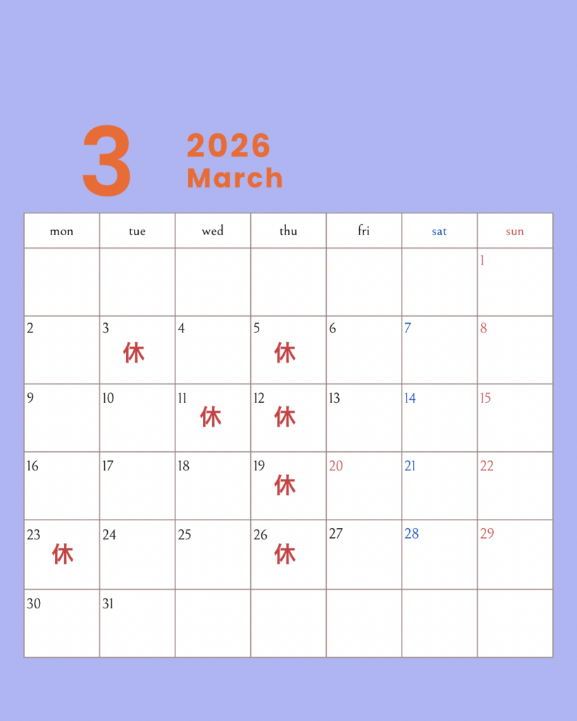 3月の営業日のお知らせです🐾